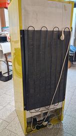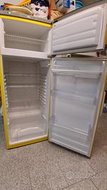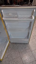 Frigorifero vivace color giallo, l'avevo in taverna, classe A funzionante con piccola cella freezer.