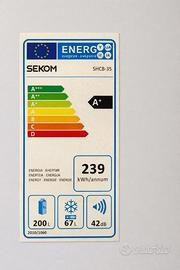 Vendo frigorifero combinato marca SEKOM, perfettamente funzionante. Frigo + freezer, ideale per casa, studio o seconda abitazione. Caratteristiche: •Capacità frigo: 200L •Freezer: 67L •Classe energetica: A+ •Consumo: 239 kWh/anno •Rumorosità: 42 dB •Cassetti e ripiani in ottime condizioni Usato solo 2 anni in seconda casa.