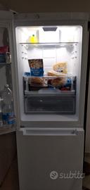 Frigorifero combinato bianco Indesit (gruppo Whirlpool) come nuovo con cassetto zero gradi per conservare la carne e il pesce fresco per 7 - 10 giorni almeno. No frost (nessun sbrinamento), ampio cassetto frutta.