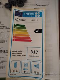 Frigorifero combinato a libera installazione Indesit No Frost Color argento. No Frost, la tecnologia che previene efficacemente la formazione di ghiaccio nel congelatore riducendo i livelli di umidità. Flusso d’aria regolare e uniforme all’interno dell'elettrodomestico, per una ventilazione potenziata. Comodo porta-bottiglie per conservare le bottiglie con sicurezza. Sistema No Frost: Congelatore Tipo di installazione: A libera installazione Numero di ripiani regolabili nel compartimento frigorifero:2 Numero di ripiani nel compartimento frigorifero:3 Colore: Argento Capacità netta Freezer (l):86 Capacità netta totale (l):298 Capacità congelante (kg/24h):4 Capienza netta del frigorifero (l):212 Euro 180,00 Per info chiamare al 3393002869