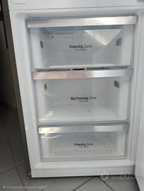 TRASPORTO SU MATERA INCLUDO NEL PREZZO. Vendo frigorifero combinato LG GBB59PZGFS. Capacità netta totale: 318 L. Cerniera porta: Destra, Tipo di display: LED. Classe climatica: SN-T, Emissione acustica: 37 dB. Capacità netta frigorifero: 225 L, No Frost (frigorifero), Sistema Multi-Airflow (frigorifero), Luce interna. Capacità netta congelatore: 93 L, Capacità di congelamento: 14 kg/24h, No Frost (congelatore). Classe efficienza energetica: A+++, Consumo energetico annuo: 174 kWh. Colore del prodotto: Platino, Argento