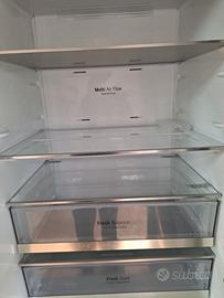 Vendo frigorifero combinato LG (frigo sopra + freezer sotto) con finitura inox, dotato di tecnologia Total No Frost e Smart Inverter Compressor.