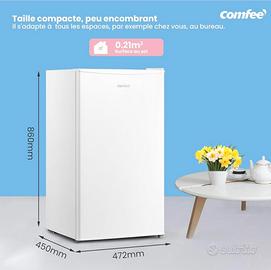 COMFEE' (E) Frigorifero Monoporta 93L Zona di raffreddamento rapido, controllo della temperatura, Silenzioso, Sicuro, Frigo Per applicazioni in Hotel, Casa, Ufficio, Colore Bianco. Con possibilità di invertire l’apertura della porta.