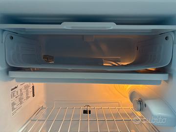 Portabottiglie nello sportello e piccolo vano congelatore.