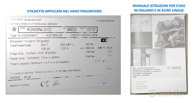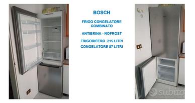 Per cambio abitazione vendo Frigorifero congelatore combinato Bosch NoFrost, misure HxLxP cm 186x60x63, Inox look, cerniere a sinistra (reversibili).
