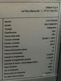 frigorifero congelatore 115L dimensioni 55x56x85 cm caratteristiche come da foto targhetta.acquistato il 3 agosto 2024 e usato 15 gg