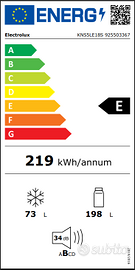 Frigorifero con congelatore da incasso per colonna cucina da 60cm. Marca: Electrolux Modello: KNS5LE18S Coldsense 500 Cerniere a destra Reversibili , Altezza 178 cm , Larghezza 55 cm , Nuova Classe energetica E (A++) , Capacità 271 l , Capacità frigorifero 198 l , Capacità congelatore 73 l , Assorbimento 219 kW , Sbrinamento Low frost.