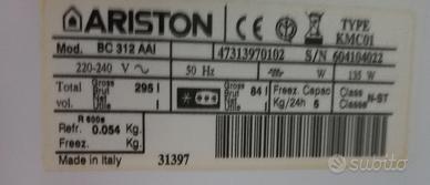 Frigo combinato 2p incasso Ariston BC312AAI in buono stato vano inferiore congelatore vano superiore frigorifero Capacità frigo 273 It Frigo statico Classe energetica A Autonomia black-out 15 h 3 ripiani vetro Larg. 54 cm alt. 177 cm. trasporto a carico acquirente
