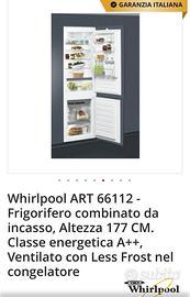 Frigorifero con freezer da incasso Whirlpool art . 66102. Uno dei cassetti freezer e’ rotto. Acquistato ad Aprile 2022 e perfettamente funzionante. Vendo per passaggio a frigorifero stand alone.