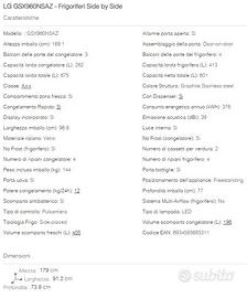 Vendo frigorifero LG modello GSX960NSAZ del 2022, pagato 1600€. Super-Mega-capiente, con vano bibite accessibile con sportello a vetro dedicato e luce che si accende bussando sul vetro (figata 😁) Dispenser acqua fredda/ghiaccio/ghiaccio tritato collegato alla rete idrica. Regalo due filtri acqua originali LG. In una delle foto ci sono tutte le caratteristiche. Solo ritiro a mano, perché servono 3 Vendo frigorifero LG modello GSX960NSAZ del 2022. Super-Mega-capiente, con vano bibite accessibile con sportello a vetro dedicato e luce che si accende bussando sul vetro (figata 😁) Dispenser acqua fredda/ghiaccio/ghiaccio tritato collegato alla rete idrica. Regalo due filtri acqua originali LG. In una delle foto ci sono tutte le caratteristiche. Solo ritiro a mano, perché servono 3 persone ed un montascale per portarlo giù dal 3° piano. Trasporto a carico e cura dell'acquirente. Trasporto a carico e cura dell'acquirente.