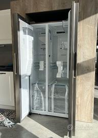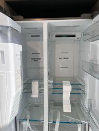 Con la sua struttura Side-by-Side da ben 515 litri, questo frigorifero offre un'organizzazione intelligente degli spazi, perfetta per famiglie numerose o per chi desidera avere tutto sempre a portata di mano. Le linee pulite, l'elegante finitura inox e le maniglie integrate si fondono armoniosamente con gli ambienti cucina più moderni e raffinati.