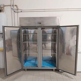 Frigorifero (da 0 a +10°C) inox a due ante, 1'400 litri (700 per lato) con griglie, come da foto. Buono stato e perfettamente funzionante. Dimensioni in centimetri 140x80x206