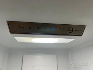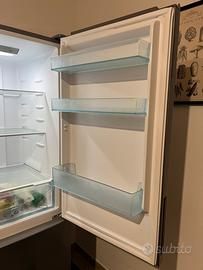Frigorifero Koenic colore grigio metallizzato a libera installazione. Congelatore integrato nella parte inferiore. Ripiani in vetro e cassettone