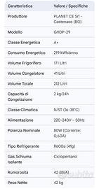 Efficienza: Classe energetica A+ (basso consumo, solo 219 kWh/anno).