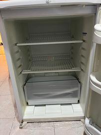 Solo frigorifero, Indesit, colore bianco e piano color avorio. Altezza 84 cm, larghezza 54,5 cm profondità 56,5 cm. 2 ripiani più vasca verdure alla base. Sulla porta 3 ripiani.