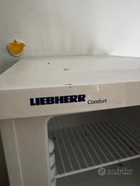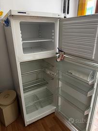 Frigorifero Liebherr bianco, libero posizionamento, con congelatore in alto. Usato, funzionante, qualche magnete sulla porta superiore. Ideale per casa, ufficio o seconda cucina.