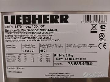 Frigorifero professionale Liebherr in buonissime condizioni. Range temperatura: -2°C - +15°C Volume interno: 650l Dimensioni esterne: 70 cm x 83 cm x H 212 cm Allarme acustico se la temperatura esce dai limiti preimpostati.