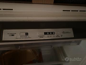 Interni: 4 ripiani in vetro, cassetto verdura e scomparti porta integri. Congelatore con vaschetta ghiaccio.