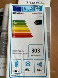 Frigoriferio con congelatore sottostante a tre cassetti della Siemens interamente No Frost. Molto capiente. Porte reversibili. Dettagli scritti in etichetta. Grigio scuro Usato solo in estate, in quanto secondo frigo. Miaure: alto 200 cm, largo 67,5, profondo cm 63,5.