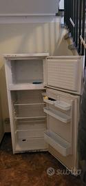 Frigorifero datato ma perfettamente funzionante. Piccolo congelatore nella parte superiore. Cassetto per frutta e verdura in basso, 3 comodi ripiani