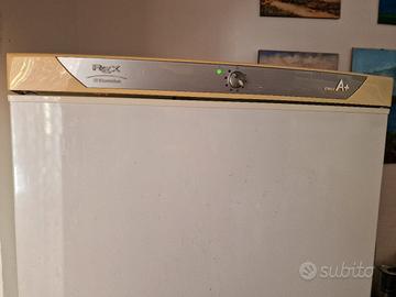 Frigorifero REX Electrolux classe A+ altezza cm. 160 circa, perfettamente funzionante con segnii di usura e lievi imperfezioni (un balconcino porta bottiglie presenta una lesione ed inoltre manca lo zoccolo frontale, come da foto). Nell'insieme le condizioni dell'elettrodomestico (solo frigo non c'è congelatore) sono più che buone. All'interno ci sono 6 ripiani di cui uno sovrapponibile per meglio sfruttare lo spazio di carico in altezza, un cassetto estraibile, mentre all'interno della porta ci sono 4 balconcini di cui 1 con sportello. Intensità di regolazione della temperatura su 8 livelli.