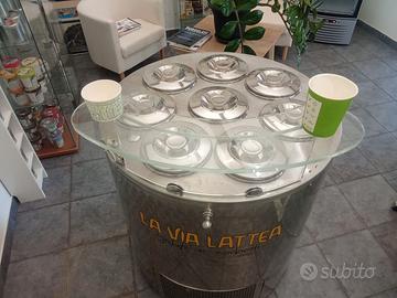 Frigorifero con 8 alloggi per doppie carapine, possibilità di mettere fino a 16 gusti di gelato. Perfetto usato pochissimo per delle dimostrazioni e poi fermo da qualche anno. Completamente in acciao inox, con serpentina intorno ad ogni vasca per le carapine. compresa una alzatina in vetro che si monta sulla parte frontale. Nuovo dalla ISA costa €11.500. Includo anche le 16 carapine che costano €45 l'una.