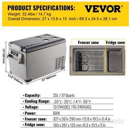 frigorifero portatile 35 lt 60w vevor per auto