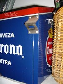 Vendo un frigorifero portatile originale anni '70 della birra Cerveza Corona con cavatappi esterno, condizioni eccellenti. MISURE 45x40x33 cm. Preferisco contatto mail, perche' non sempre posso rispondere al telefono.