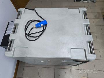 Contenitore refrigerato con motore Melform Koala 150 progettato per il trasporto di alimenti freschi e/o surgelati, con robusta porta anteriore, capacità di 150L e alimentazione 220/24/12 V . Contenitore per impiego professionale isotermico con temperatura settabile e termocontrollata da -5° a + 90° . Solido e compatto, ergonomico, adatto per l'inserimento di teglie l/l 600x400 mm, molto robusto dotato anche maniglie in acciao inox e chiusure a tenuta. Adatto per il trasporto per l'inserimento e impiego in furgoni e van. Isolamento con schiuma poliuretanica ecologica (senza CFC e HCFC). L'Atterzzatura ben tenuta, perfettaamente funzionante. E'possibile effettuare qualsiasi prova, venduto nella formula visto provato e piaciuto. Disponibili 2 unità Prezzo 350 Euro al pezzo.