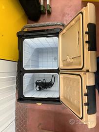 Frigo portatile Steamy Dual Zone da 55 litri, colore beige e nero. Perfetto per viaggi e campeggio. *UTILIZZATO UNA SOLA VOLTA* Prestazioni di raffreddamento molto elevate senza l'uso di ghiaccio o elementi refrigeranti: da -20 °C a 20 °C. Congelatore e frigorifero in uno! Raffredda da 25 °C a 0 °C in 30 minuti. Il frigorifero portatile a compressore può essere collegato all'accendisigari CC (12/24 V) o tramite presa CA (110-240 V). Questo frigorifero portatile è dotato di protezione multistadio contro la scarica della batteria. - Doppia zona di temperatura. - Capacità 55 litri. - Design compatto e leggero. - Maniglia ergonomica.