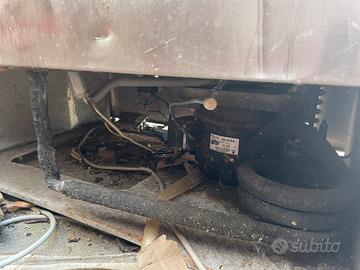Frigorifero inox basso due ante e anta superiore.