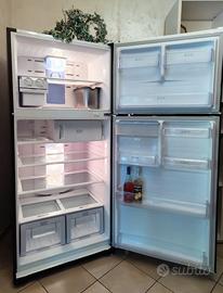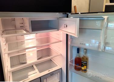 Bellissimo frigorifero Samsung American Style 566 L Acciaio Inox. Capienza 412 L Frigo – 154 L Freezer 4**** Dimensioni importanti H185 x L85 x P70. Cl. energetica A+ Elegantemente rivestito con raffinata pellicola wrap nero opaco. Freddo uniforme ovunque con sistema di ventilazione a flusso multiplo. Luce LED. Scomparto basse temperature multifunzione. Scomparto frutta e verdura in due grandi vasche con controllo umidità Risparmio energetico periodo vacanza Serbatoio ed erogatore esterno di acqua fresca da 2 lt. Ghiaccio pronto in cubetti. Vasca inox per gelato. Filtro controllo odori. Ripiani in vetro, contenitori, guarnizioni tutto in condizioni perfette. Vendo per inutilizzo (troppo grande per le mie esigenze). Prezzo leggermente trattabile Non spedisco. Visionabile. Ritiro e trasporto carico dell'acquirente