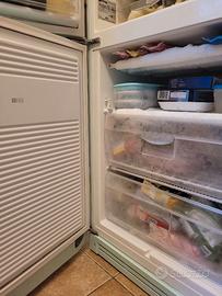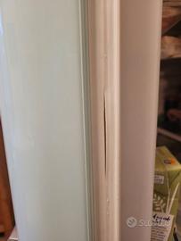 Cerniera sinistra. Il frigorifero si presenta in buone condizioni, elenco di seguito tutti i piccoli difetti: Le guarnizioni sono un pò usurate/annerite, una macchia sulla parete posteriore interna (foto 4), nel freezer manca lo sportello del primo piano e il cassetto del secondo piano ha una crepa (foto 5), lo sportello del freezer in basso ha alcune righe (foto 6),