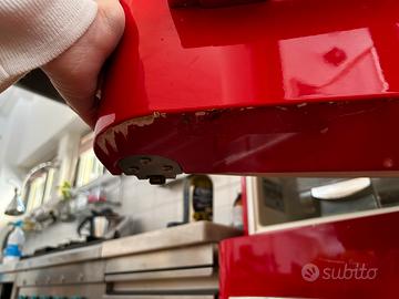 Vendo frigorifero Smeg modello FAB32R3 rosso, iconico stile anni ’50. Il frigorifero è completamente funzionante e molto capiente. Presenta però segni del tempo sia esterni che interni (graffi sulla scocca e alcuni elementi interni da sostituire, come visibile in foto), per questo il prezzo è ridotto. Ottima soluzione per chi cerca un Smeg di design a costo accessibile o per chi vuole sistemarlo facilmente (ricambi disponibili online). Caratteristiche: •Capacità totale circa 330 L •Frigo 205 L + Freezer 103 L •Freezer 4 stelle •Sistema ventilato •Made in Italy Condizioni: Perfettamente funzionante Esteticamente vissuto (vedi foto) Ritiro: Milano – ritiro a mano Trasporto a carico dell’acquirente Disponibile per qualsiasi prova