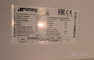 Vendo frigorifero Smeg (FA120AP), usato poco e in ottime condizioni. Ritiro a carico dell’acquirente presso il mio domicilio (indirizzo condiviso successivamente). Dimensioni: L 545 P 600 H 840 mm.
