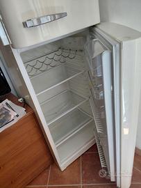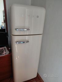Vendo frigorifero SMEG vintage dal design anni ’50 , con logo Smeg e linee bombate. Fricocongelatore a doppia porta Congelatore presenta una piccola rottura come in foto ma perfettamente funzionante Frigorifero funziona ma non riesce a raggiungere temperature molto basse Misure L = 60cm H = 169cm P=70cm Prezzo trattabile