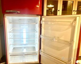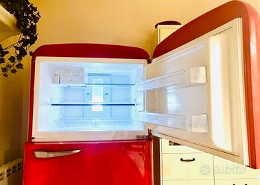 Vendo bellissimo frigorifero Smeg stile anni ’50, colore rosso, design iconico. Dimensioni: •Altezza: circa 185 cm •Larghezza: circa 70 cm •Profondità: circa 73–75 cm Doppia porta (freezer sopra + frigorifero sotto). Molto capiente. Design bombato retrò con maniglie cromate. PERFETTAMENTE funzionante. Non spedisco, ritiro e trasporto a carico dell'acquirente. Zona: Grottaferrata