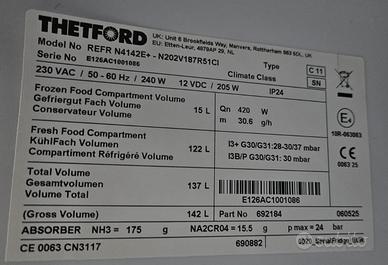 Frigorifero trivalente Thetford N4142E+ come nuovo usato solo tre volte solo con la 220v. Acquistato con il camper a Giugno 2025, lo vendo perchè l'ho sostituito ora con uno a compressore che preferisco. Dimensioni e assorbimenti vedi foto etichetta e sito Thetford dove trovate tutte le specifiche tecniche. Visionabile presso Caravan Service di Livorno