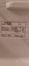Frigorifero ventilato con 4 ripiani (231 litri) e congelatore a 3 cassetti (87 litri). Marca "Master". Dimensioni: 185x59x60 cm. Buone condizioni, interno pulito.