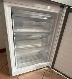 Frigorifero a libera istallazione con porte reversibili, freezer in basso, balconcini removibili, portabottiglie e ripiani in vetro. Piedini regolabili. Il frigo ha solo due anni di vita ed è ben tenuto, pulito e raffredda perfettamente ma vendo causa trasloco.