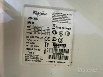Vendo frigorifero Whirlpool WBA43983 NFC IX in buone condizioni estetiche, ma non raffredda.