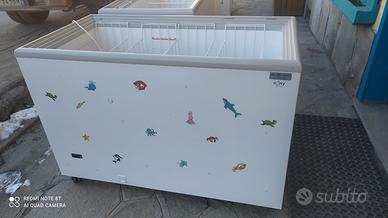 numero 2 conservatori orizzontali vetri scorrevoli Kaila 400 GT dimensioni 1283 * 670 * 89 5 mm. modelli con coperchi vetrati scorrevoli, serratura, quattro ruote pivottanti, termometro meccanico, temperature da meno 18 gradi a meno 25°. usati solamente 15 mesi. ritiro a carico dell'acquirente in Loco