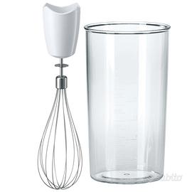 Vendo nuovo, mai usato in confezione originale Minipimer Frullatore a immersione Multiquick 5 MR540 Aperitive. Descrizione BRAUN Multiquick 5 = prepara il cibo senza sforzo: grazie alla potenza di 600 watt, 15 velocità e l'esclusiva funzione turbo, i mixer manuali Braun Multiquick soddisfano tutti i requisiti per la preparazione delle vostre specialità: dal mescolare gustose zuppe e salse, al tritare erbe, al tagliare e grattugiare verdure per insalate colorate e montare gli albumi. Caratteristiche: è stato progettato per aiutarti nelle preparazioni di tutti i giorni senza intralciarti in cucina ti aiuta a preparare cibi sani in modo semplice e senza sforzo è dotato di tutte le funzioni di un robot da cucina più grande, anche se è pur sempre un frullatore ad immersione che occupa solo uno spazio minimo in cucina è facile e intuitivo da usare, può essere facilmente smontato e aperto per una pulizia facile ed efficace basso numero di giri per un migliore controllo motore DC potente e silenzioso gli accessori possono essere lavati in lavastoviglie (escluso il blocco motore) Parametri tecnici: numero di velocità: 15 + turbo parti adatte al lavaggio in lavastoviglie manico morbido consumo energetico: 600 W colore: bianco/grigio denominazione originale: MR 6550 MBCHC Contenuto della confezione: accessorio di miscelazione in acciaio inossidabile con protezione antispruzzo grande frusta in acciaio inossidabile tritatutto piccolo HC (350 ml) contenitore tritatutto grande con tritaghiaccio BC (1000 ml) contenitore da lavoro/dosatore per la miscelazione con coperchio Dettagli tecnici MarcaBraun Numero di modelloMR 540 Aperitive ColoreBianco/Grigio Dimensioni del prodotto28,7 x 40,39 x 18,03 centimetri; 1,81kg Capacità350 millilitri, 1000 millilitri, 200 millilitri Potenza/Wattaggio600 watt Voltaggio240 Volt MaterialePlastica Numero di velocità15 Caratteristiche specialiPortatile Peso dell'articolo1,81 kg