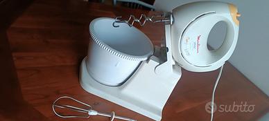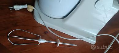 Frullatore bianco con ciotola e fruste in metallo. - Ciotola capiente. - Fruste a spirale incluse. - Design compatto.