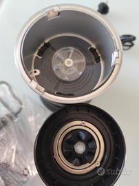 utilizzato massimo 10 volte. pari al nuovo. con accessori Tipo: Frullatore verticale personale progettato per smoothie e frullati. Caratteristiche: Motore progettato per una lavorazione rapida senza grumi. Accessori: Include vari pezzi e bicchieri per la preparazione delle bevande. Colore: nero