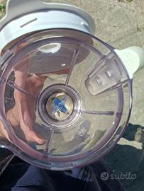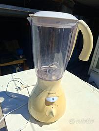 Comodo frullatore Kenwood modello BL430, perfettamente funzionante. A 2 velocità + funzione Pulse. Caraffa graduata da 1,5 litri. Lame in acciaio inox. Progettato per diverse preparazioni in cucina: Ideale per preparare smoothie, frullati di frutta, frappè e cocktail. Perfetto per rendere omogenee verdure cotte per minestre, zuppe o vellutate. Puoi usarlo per fare la maionese fatta in casa, vinaigrette, pesti o altre salse come il paté o anche per sminuzzare noci, nocciole o pane secco in piccole quantità. Anni'90-2000. Completo di dosatore.