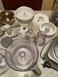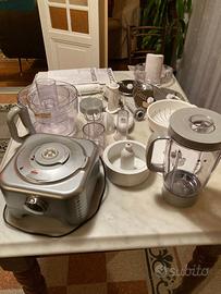 Il Multipro FP 73 è uno spremiagrumi che funziona egregiamente, una centrifuga per tritare, il disco per affettare le verdure, la frusta per gli impasti e un frullatore graduato da 1,5 litri (ottima capienza), sempre in plastica