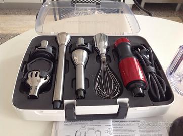 DOTATO DI ISTRUZIONI. CON VALIGETTA. QUESTO MODELLO PREVEDE ANCHE IL TRITATUTTO E LA CARAFFA. USATO E BEN CONSERVATO. NOTA CHE IL BICCHIERE CON LAME, DENOMINATO TRITATUTTO, APRESENTA ALL' INTERNO QUALCHE SEGNO DELL' UTILIZZO CHE NON COMPROMETTE MINIMAMENTE IL FUNZIONAMENTO . VEDI FOTO