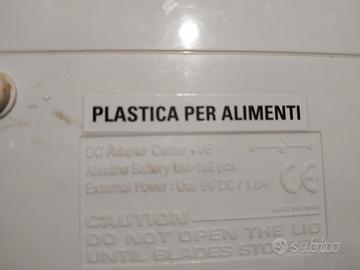vendesi mini robot da cucina usato, funzioni frullatore, speriagrumi, grattugia. Vendesi senza alimentatore 9V DC/1.8A