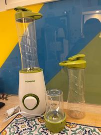 Hommini frullatore, mini frullatore, 2 borracce da 500 ml con tappi per utilizzo esterno. Il set è formato da 8 pezzi (2 lame, 2 borracce, 1 mini contenitore, 2 tappi ermetici, 1 corpo motore.